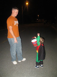 We ended up just taking Sean and Hailey (a friend) out Trick or Treating, Kyle stayed home with Daddy! It was past bedtime!